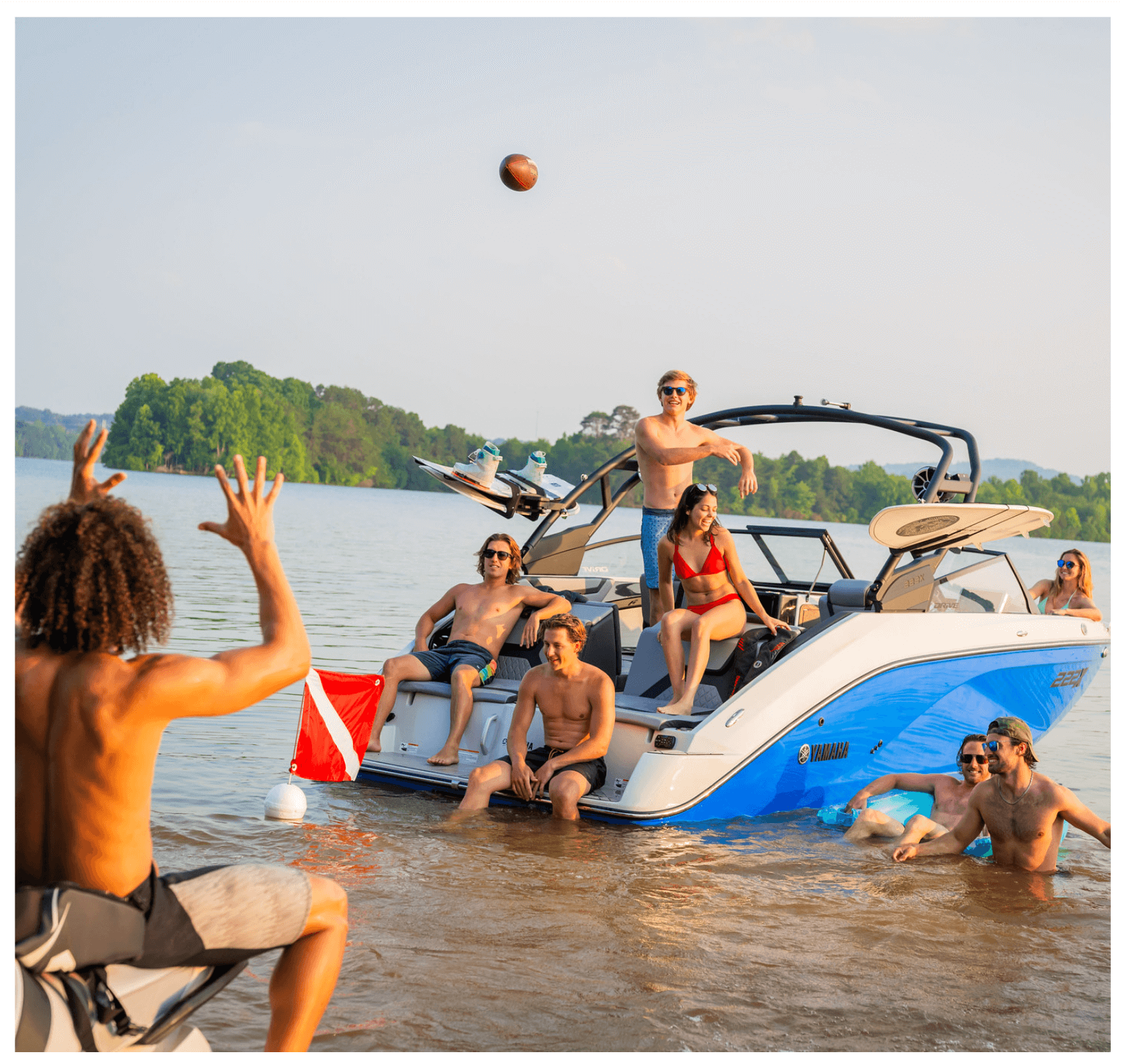 Our stock of Yamaha bowrider sport boats lets you experience the water like never before. Equipped with 1.9L 16-valve High Output Yamaha engines, Yamaha's 2024 water cruisers range from 19 to 27-foot boats to fit you, all your guests, and anything you need for a great day out on the lake or at sea. Available in several colors, Yamaha's boats include what competitors consider optional, with all standard features. Bowriders are the ultimate hangout spot, with comfortable bow seating in the front and a spacious Yamaha Swim Platform in the back - stereo remote and reboarding ladder included.